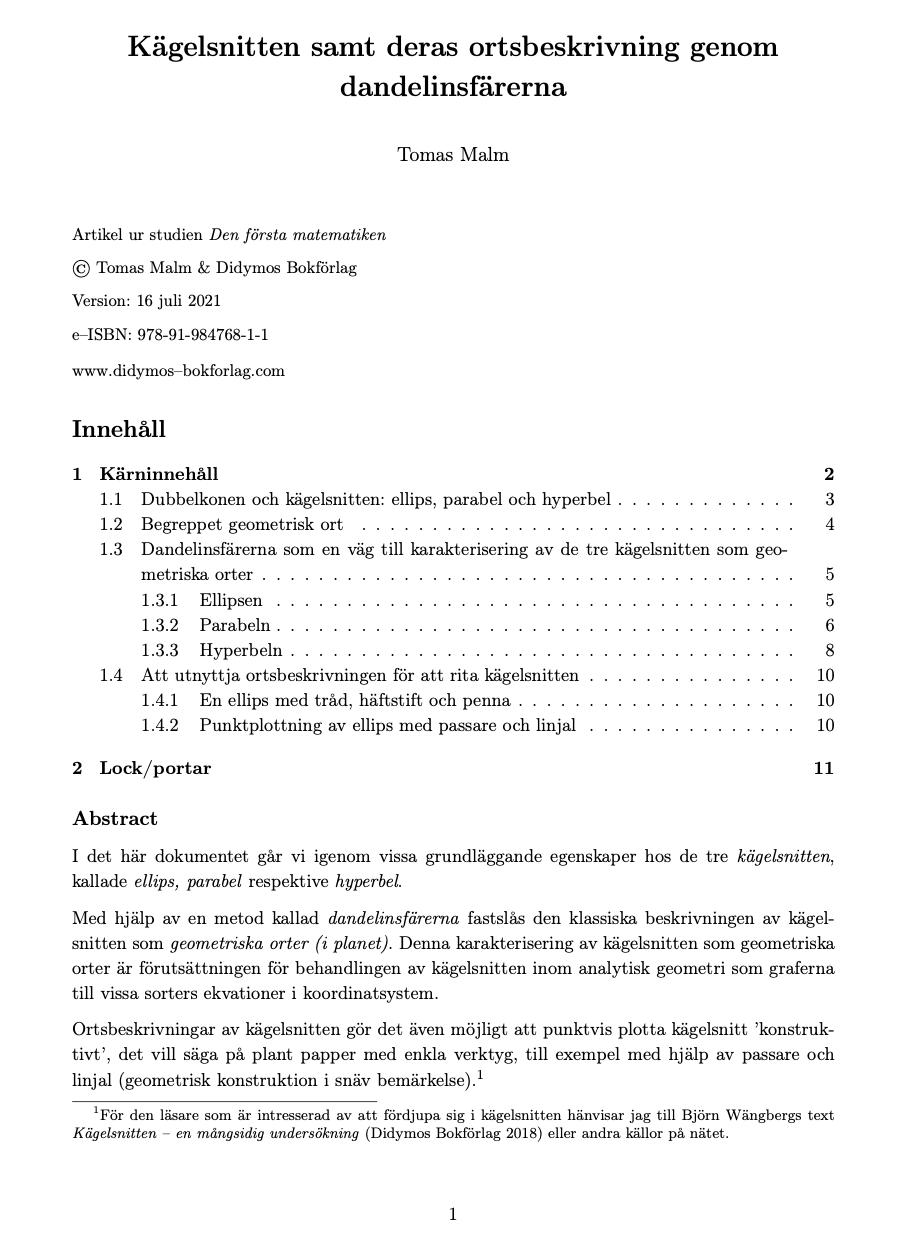 Uppsatsen ingår i del I (Den första geometrin) av studien Den första matematiken, som också finns att köpa som bok.