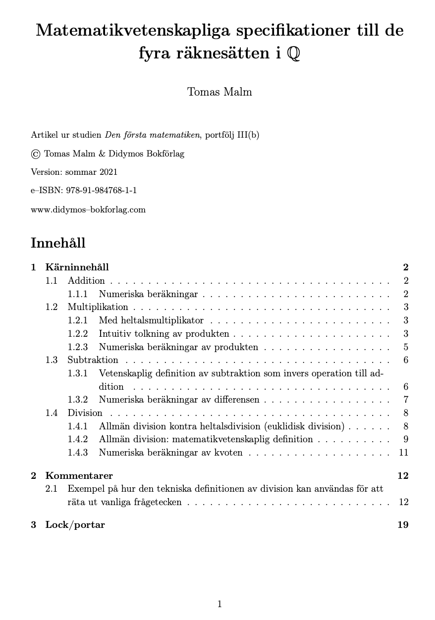 Uppsatsen ingår i del III(b) (De rationella talen och algebrans grunder) av studien Den första matematiken, som också finns att köpa som bok.
