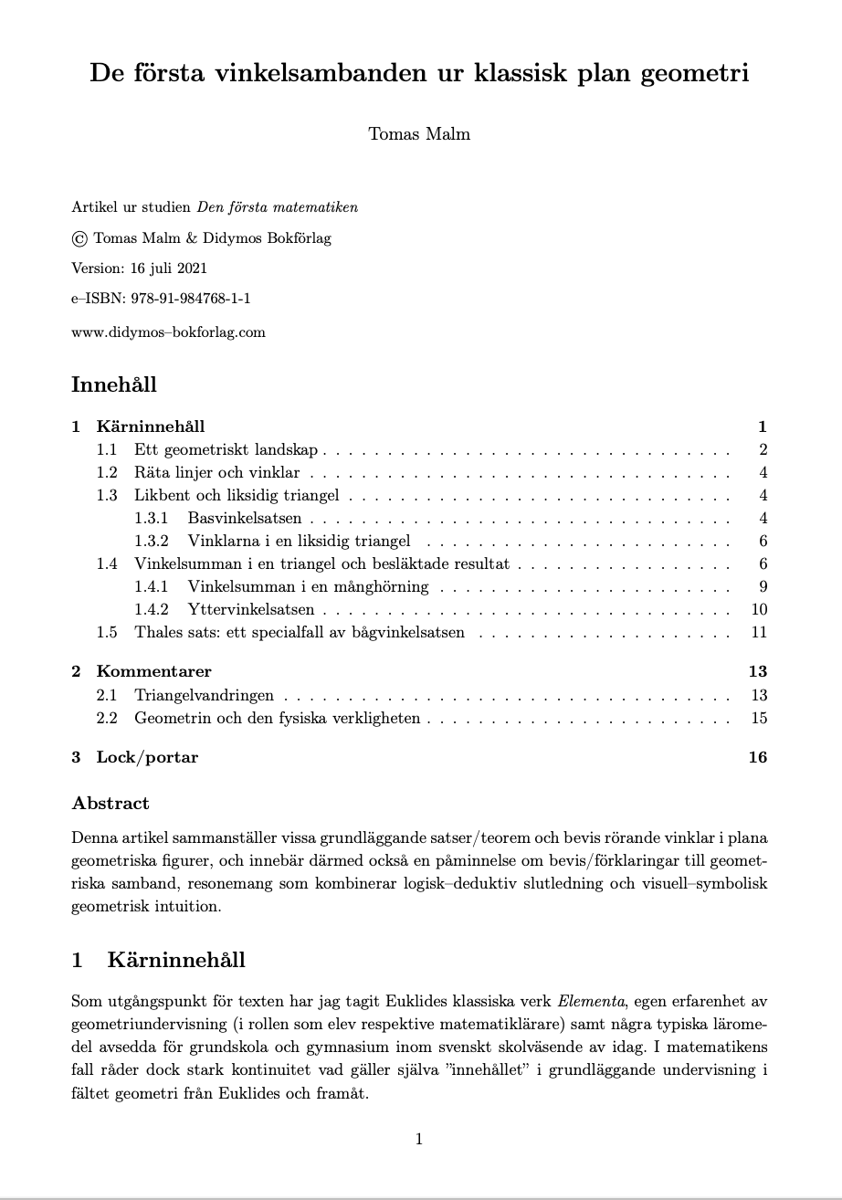 De första vinkelsambanden ur klassisk plan geometri