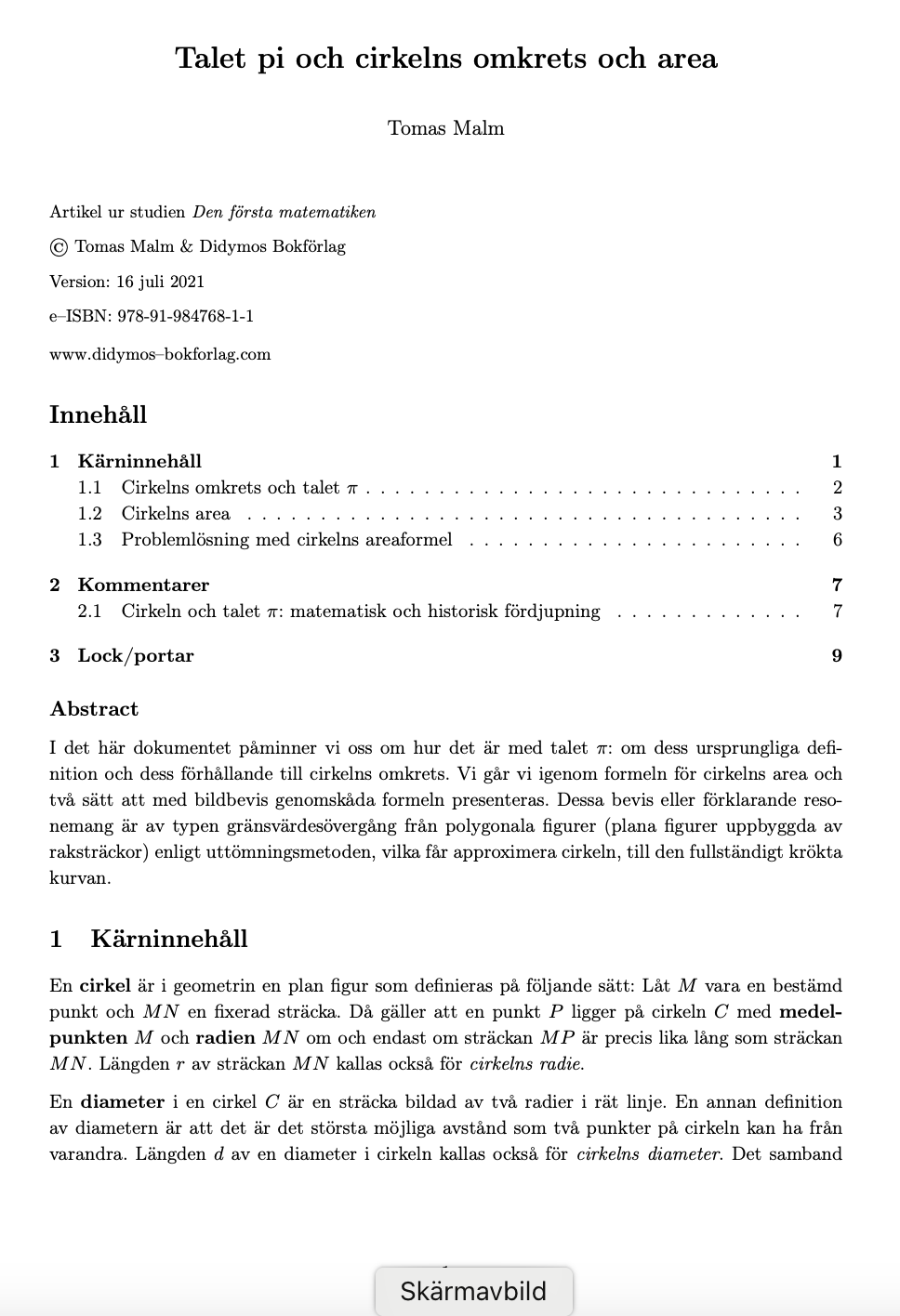 Uppsatsen ingår i del I (Den första geometrin) av studien Den första matematiken, som också finns att köpa som bok.